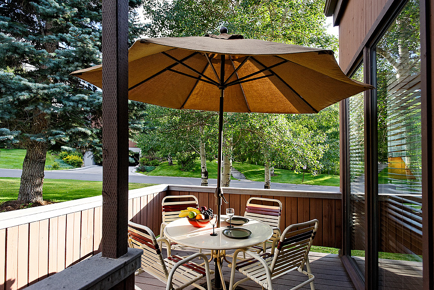 Quiet deck looking out on to Park City Golf Course, XC Skiing area during winter months.